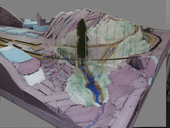 The model is scratch built and has over 250 pieces of custom cut scale basswood and nut/bolt details. The trestle has been set and operational. There are a few details yet to be added.