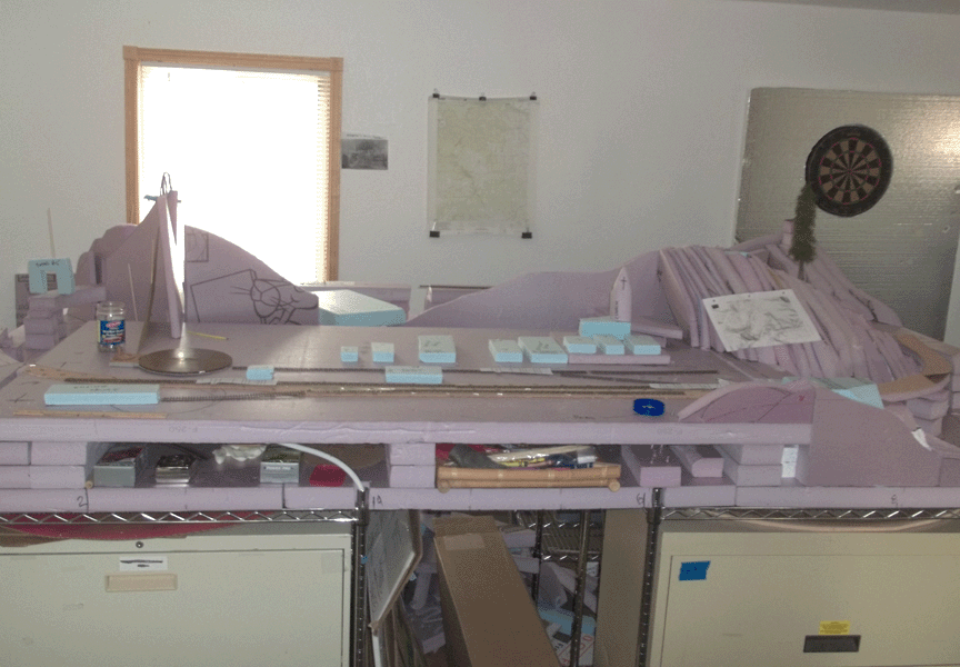 The Plan: Add scratchbuilt town buildings, depot, engine house, turntable.