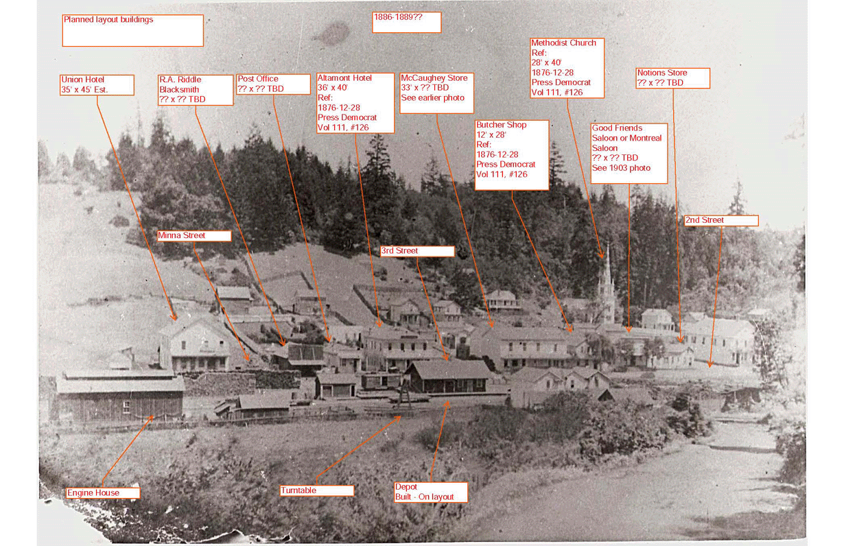 The Plan: Add scratchbuilt town buildings, depot, engine house, turntable.